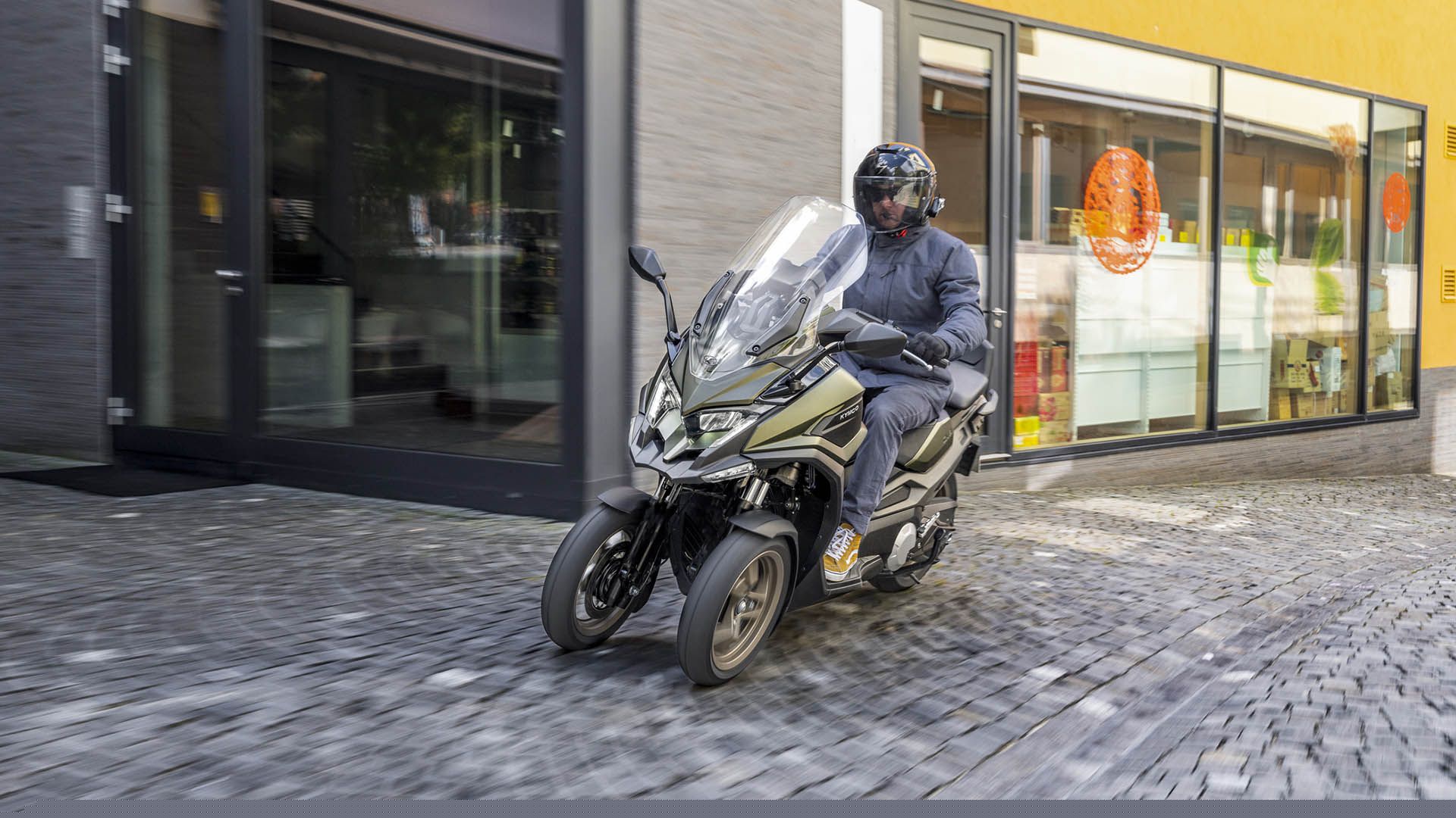Premier scooter de sa catégorie à être équipé d'un moteur bicylindre, le Kymco CV3 vous accompagne au quotidien pour vous faufiler partout en ville et prendre du plaisir sur toutes les routes. Prenez la route avec le Kymco CV3 et profitez du confort et de la praticité du sccoter 3 roues.